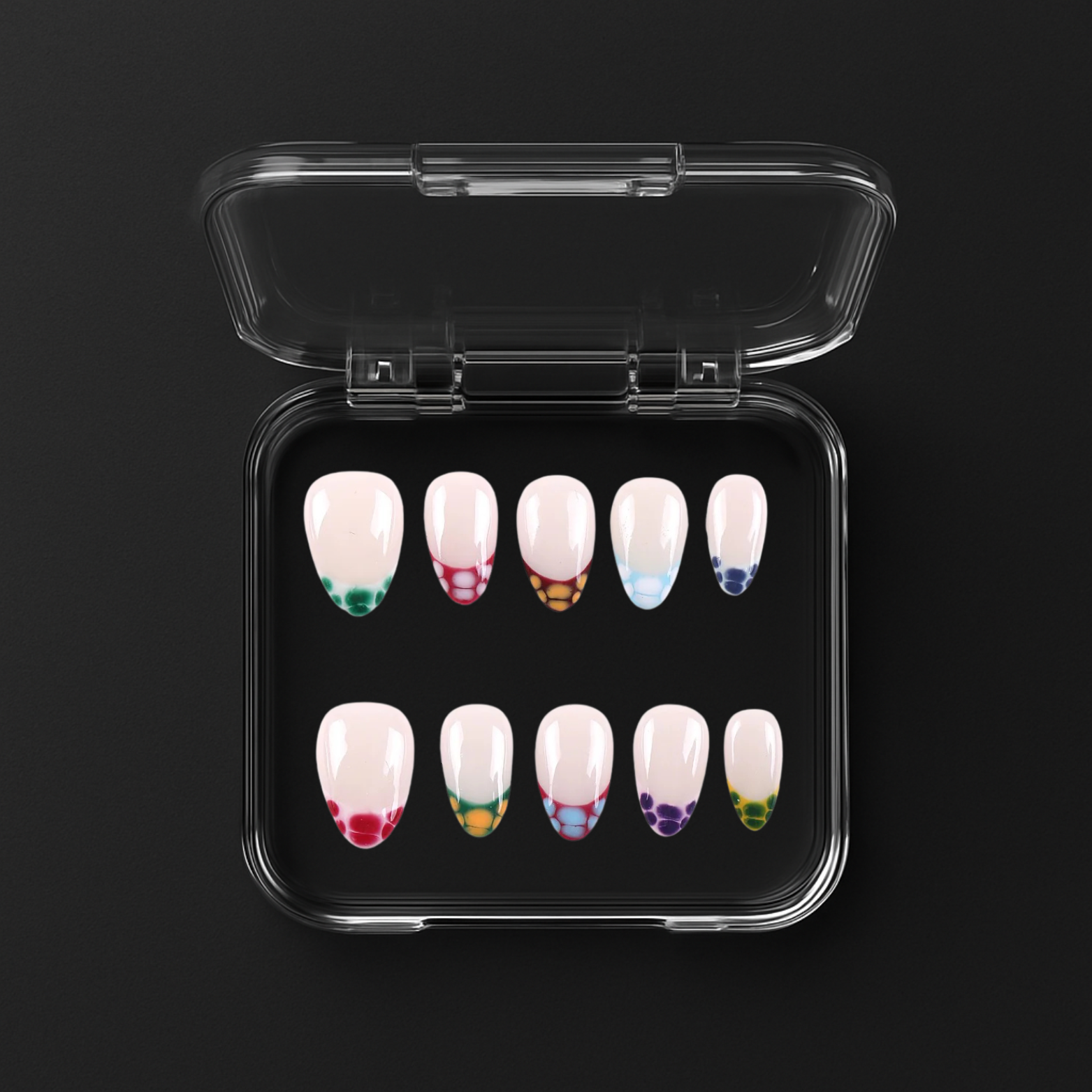 Kompaktiškas, patogus rinkinys leis nagus atsinaujinti bet kur: namuose, darbe ar kelionėje. Daugkartinio naudojimo, lengvai nuimami be žalos natūraliems nagams.