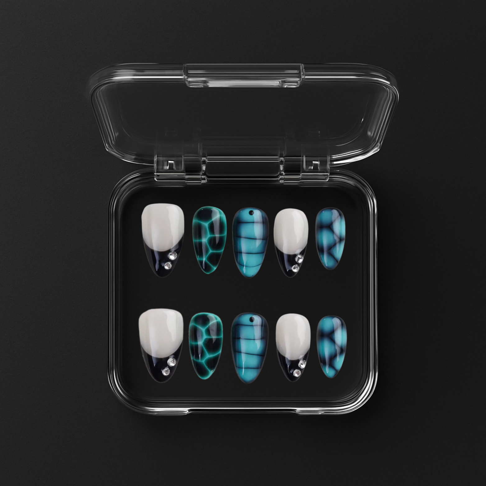 KURU press-on nagai – maži, stilingi ir funkcionalūs. Rankų darbo geliniai nagai tvirtai priglunda ir yra atsparūs kasdieniam nešiojimui. Tinka visiems nagų tipams, suteikia salono lygio rezultatą be salono vizito – užsidėsi namuose vos per 10 min.