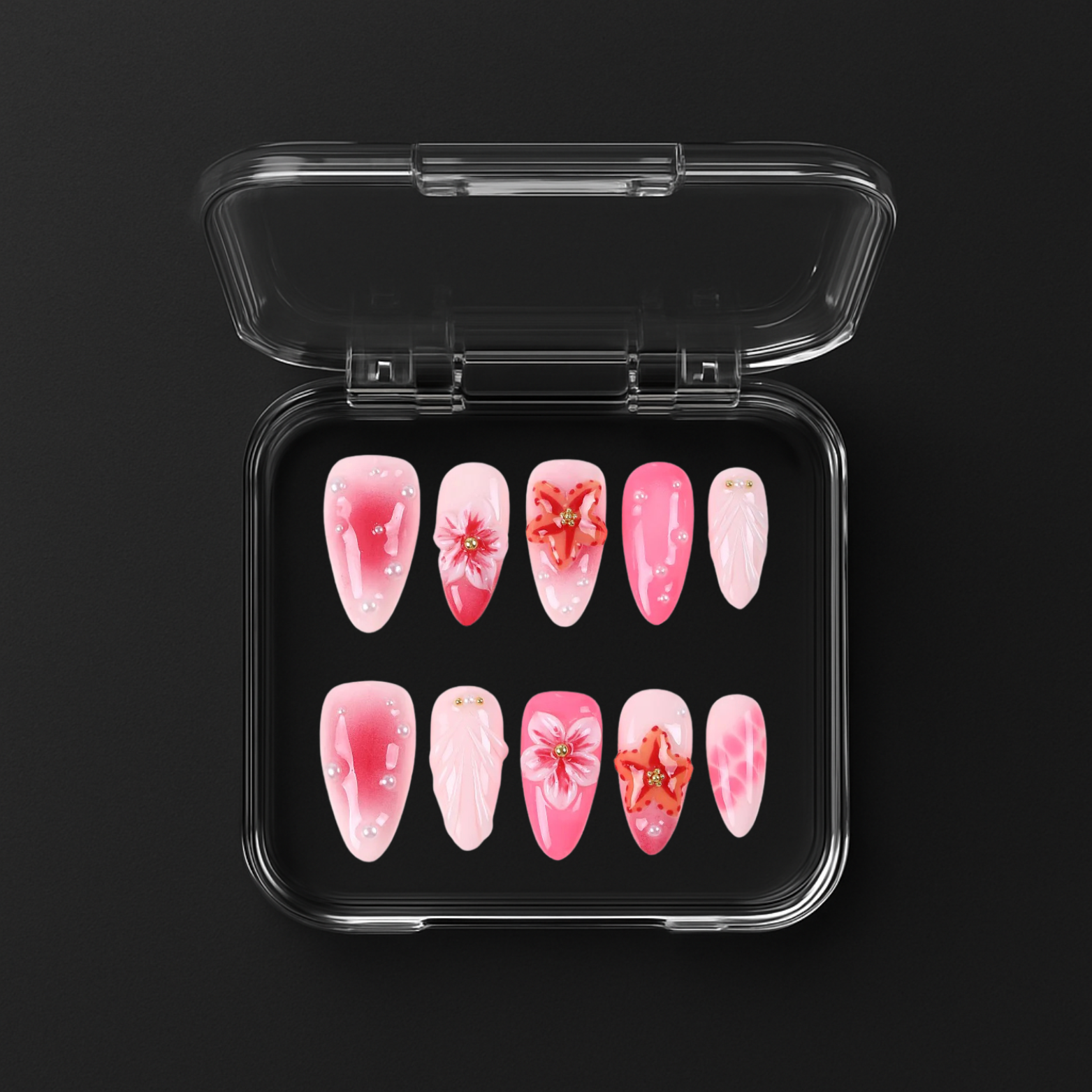 KURU press-on nagai – maži, stilingi ir funkcionalūs. Rankų darbo geliniai nagai tvirtai priglunda ir yra atsparūs kasdieniam nešiojimui. Tinka visiems nagų tipams, suteikia salono lygio rezultatą be salono vizito – užsidėsi namuose vos per 10 min.