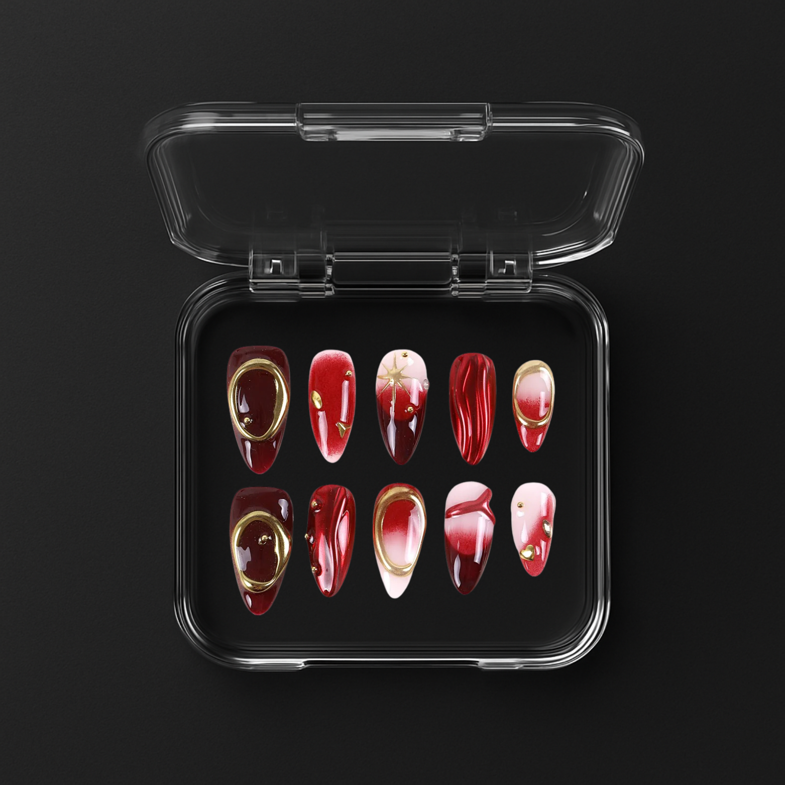 Kompaktiškas, patogus rinkinys leis nagus atsinaujinti bet kur: namuose, darbe ar kelionėje. Daugkartinio naudojimo, lengvai nuimami be žalos natūraliems nagams.