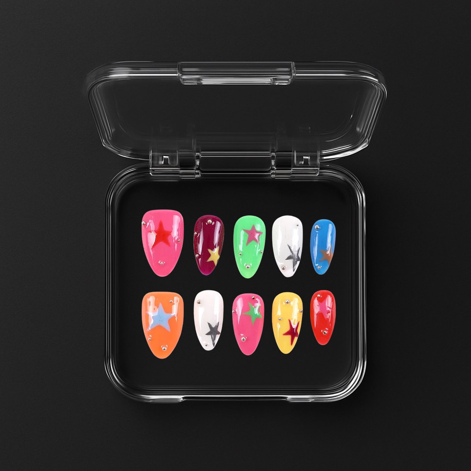 Kompaktiškas, patogus rinkinys leis nagus atsinaujinti bet kur: namuose, darbe ar kelionėje. Daugkartinio naudojimo, lengvai nuimami be žalos natūraliems nagams.
